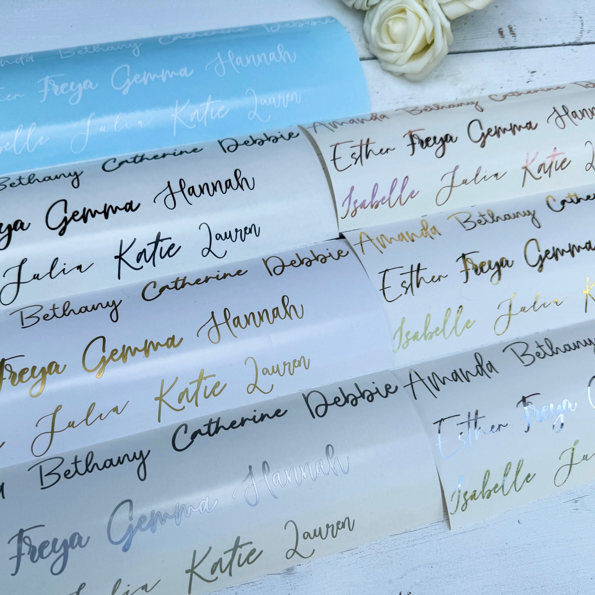 Popular colours include black, white, gold silver and rose gold, however other colours are available (see additional photos). Please state your preferred font style and colour in the notes to seller box at checkout.