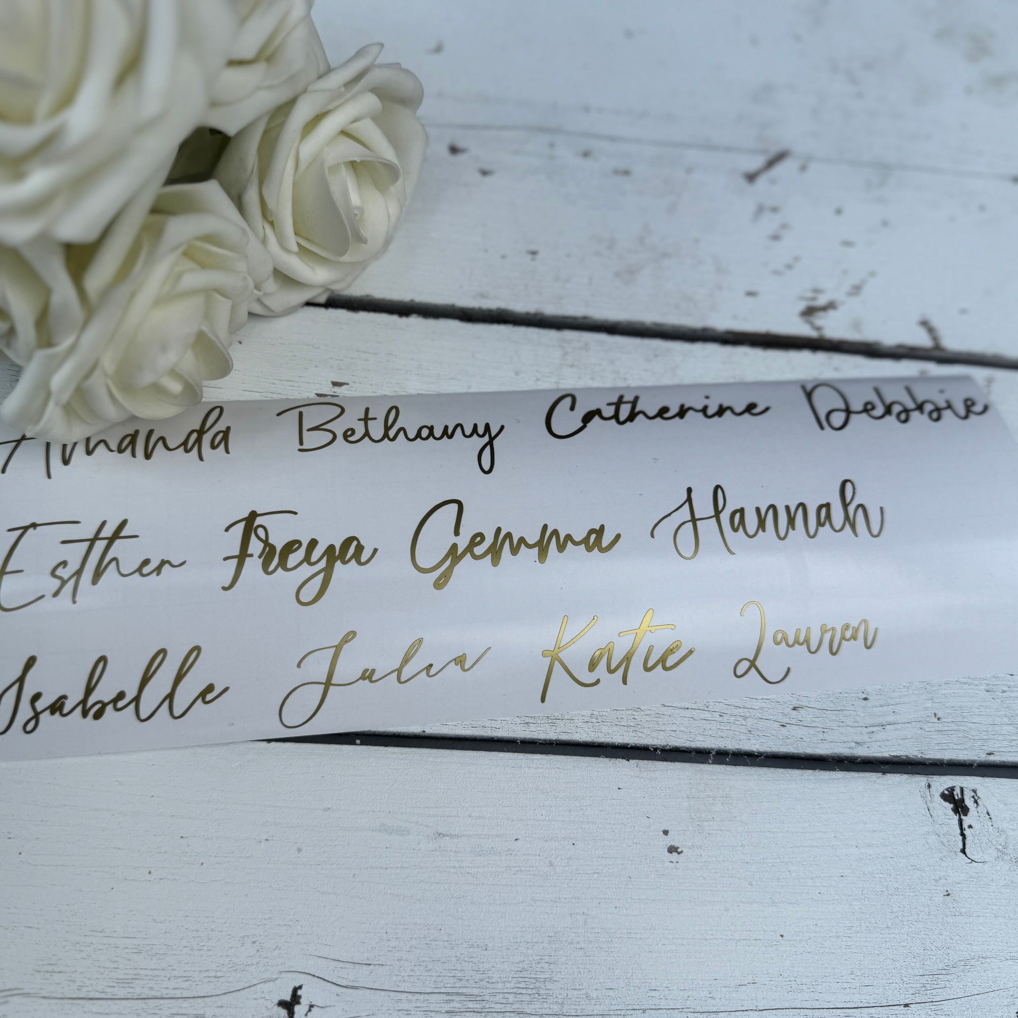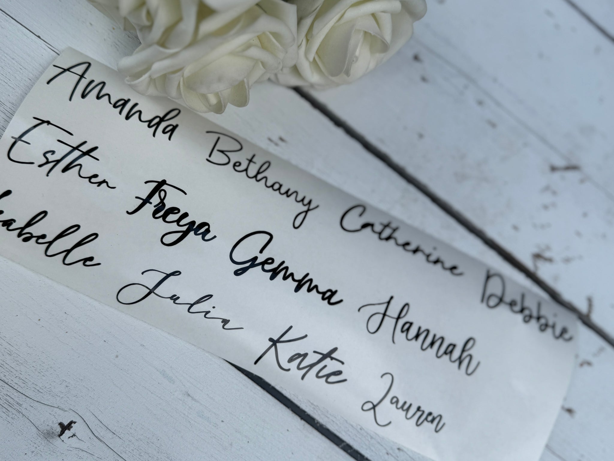 Add a fabulous finishing touch to the big day with these fantastic personalised, vinyl, coat hanger decals.